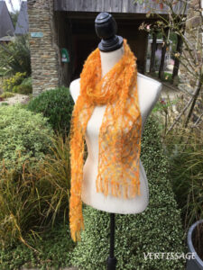 Ainsi, en 2016, elle crée le mariage tissage et dentelle en réalisant une écharpe tissée et fine en dentelle et ce en utilisant les fils de chaîne.