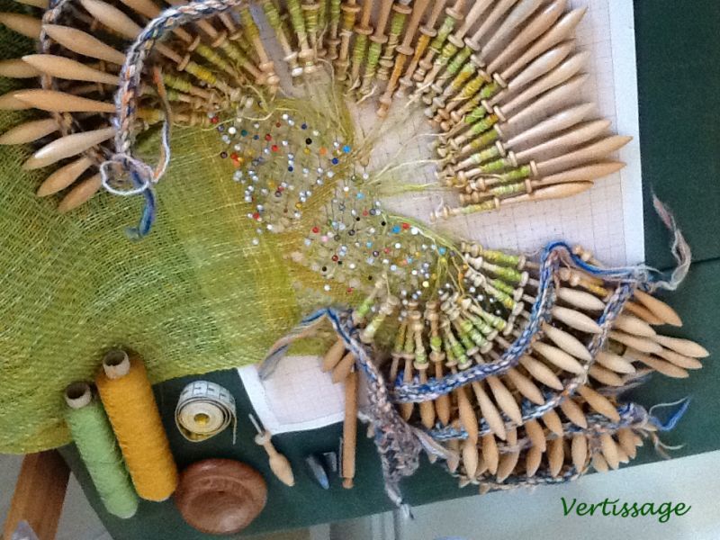 En 2010, Claire Aubert apprend l’art de la dentelle aux fuseaux avec l’idée de mettre une touche finale à ses créations. Son travail de dentelle se découle en coton, lin, laine, mohair, soie et alpaga. Elle réalise des cols, des écharpes et autres accessoires.