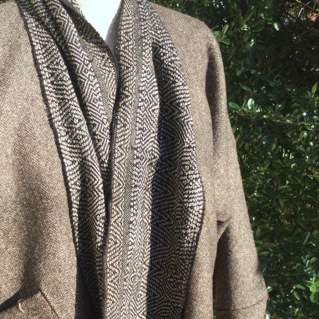 Produit phare de l’atelier, elle régule la température en toutes circonstances, été comme hiver et tient la pluie pour les capettes les plus épaisses. Elles se portent dans tous les sens, plus ou moins enveloppante, au gré de vos envies et de vos besoins. Sur un pull en version déployée sur les épaules, sous un manteau en version écharpe serrée sur le devant, retroussée sur les épaules si vous avez besoin d’une grande liberté de mouvement. Tout est possible. Les capettes sont le plus souvent tissées avec des laines locales, plus rustiques que le mérinos, mais plus intéressantes au niveau poids et chaleur. Elles s’assouplissent et s’adoucissent avec le temps: plus vous les portez, plus elles s’améliorent.